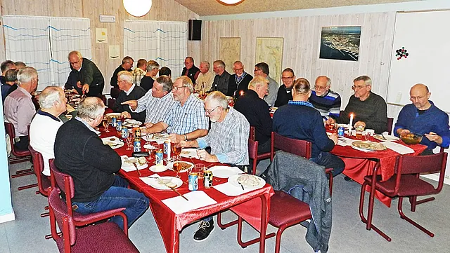 Vi har altid holdt en god juleafslutning – og altid efter, at vi har lavet gymnastik. Det første år var vi oppe på hotellet ved Jørgen Holst. Derefter var vi i mange år i Skelhøjeskolens skolekøkken og bestak pedellen til, at vi kunne blive der til kl. 23. Til sidst gik det ikke længere og efter forskellige ”sidespring”: Skomø Skilte ved Ole Skotte Møller og Brandstationen, landede vi i Sejlklubben nede på havnen.