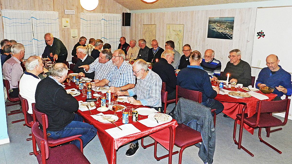 Vi har altid holdt en god juleafslutning – og altid efter, at vi har lavet gymnastik. Det første år var vi oppe på hotellet ved Jørgen Holst. Derefter var vi i mange år i Skelhøjeskolens skolekøkken og bestak pedellen til, at vi kunne blive der til kl. 23. Til sidst gik det ikke længere og efter forskellige ”sidespring”: Skomø Skilte ved Ole Skotte Møller og Brandstationen, landede vi i Sejlklubben nede på havnen.